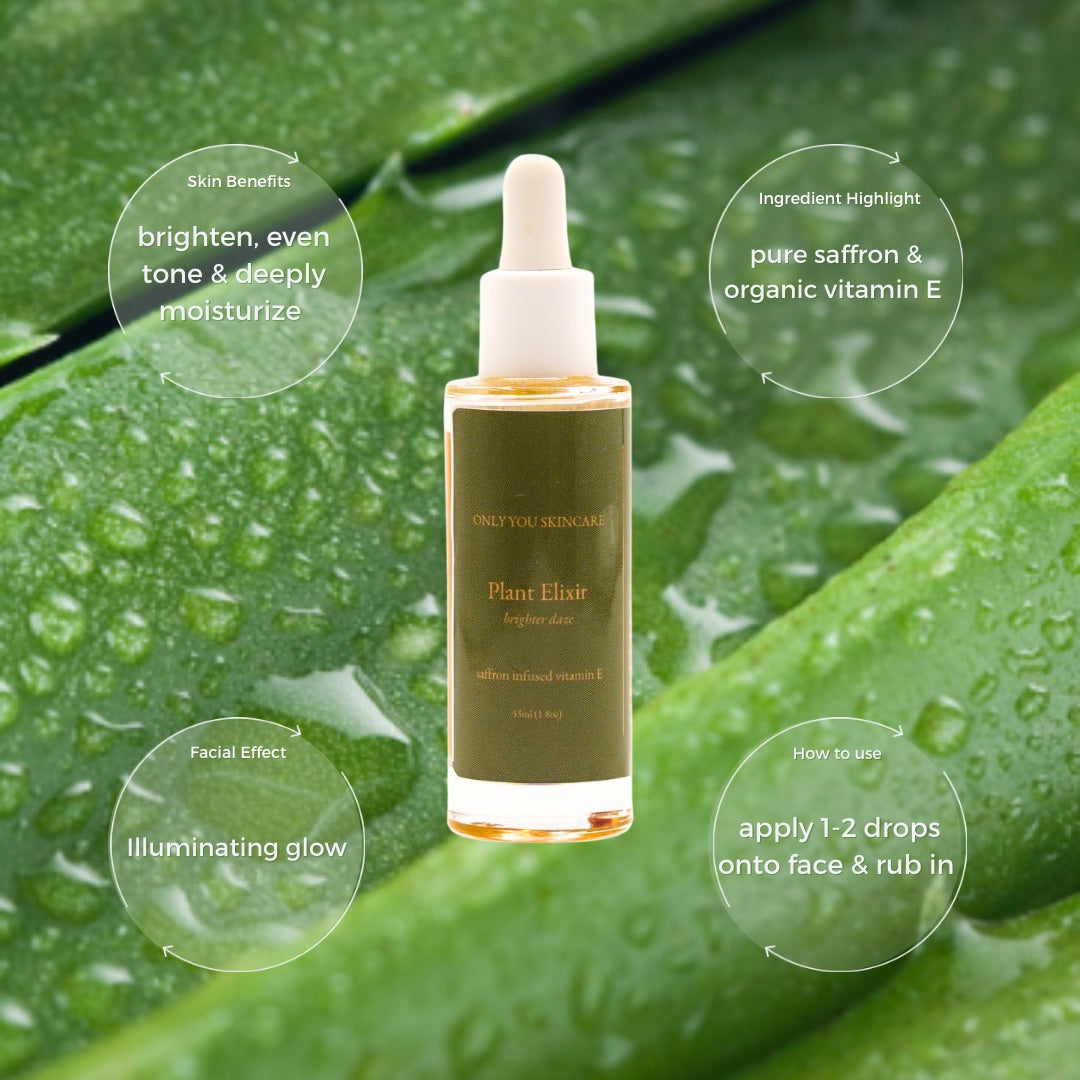 This rare spice packs a ton of Vitamin C, antioxidants and plant illuminating properties. Get ready for an illuminating island glow with our sun kissed saffron Brighter Daze Plant Elixir! Saffron's potent nutrients is great for dark under eyes and hyper-pigmentation. Soaked for 8 weeks, in pure vitamin E, this plant elixir penetrates the skin clearing dark spots.