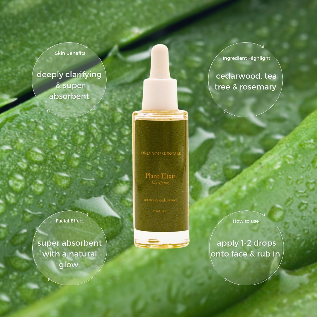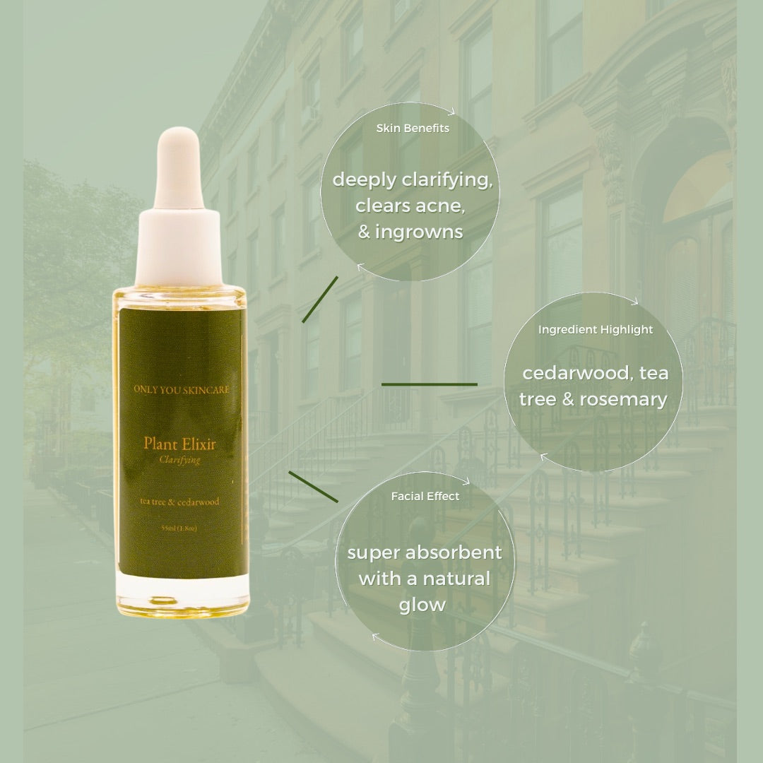 Pairs perfectly with our Clarifying Plant Cleanser and Clarifying Tea Tree & Cedarwood Tea Toner. Our blend of pore-cleansing, anti-bacterial, and anti-microbial botanics will leave your skin feeling refreshed.