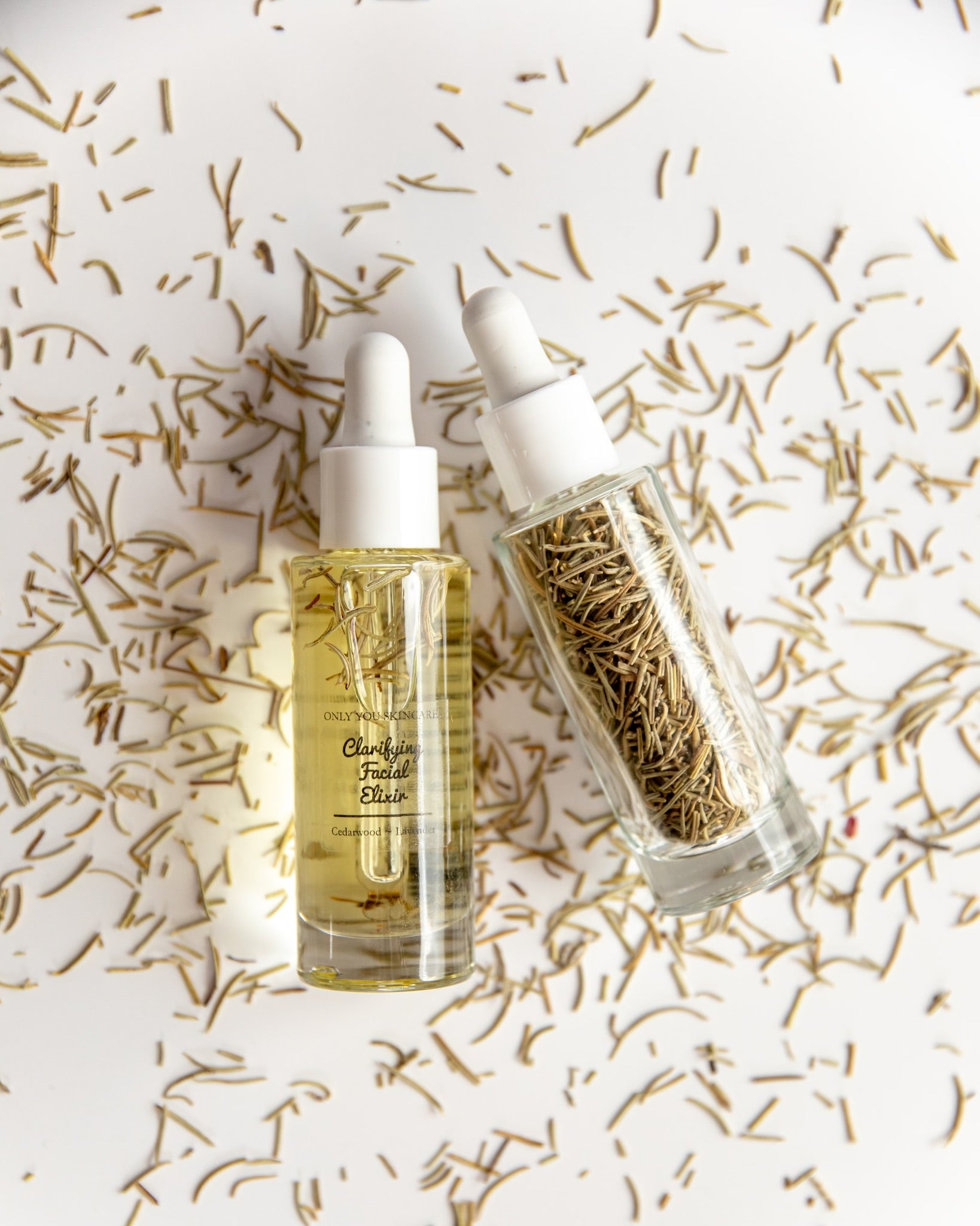 This silky lightweight facial oil is packed with clarifying Phyto-Nutrients like rosemary, cedarwood and tea tree. Expertly formulated with our unique 8 week herbal soak blend, this elixir effectively targets acne, blemishes, and small bumps. Whether you have facial or body acne, oily skin, or simply desire a deeply clarifying moisturizer, this facial oil is the perfect choice.