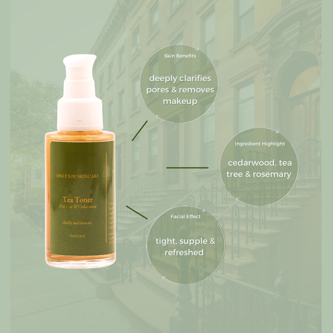 Our Tea Tree & Cedarwood Tea Toner is a refreshing drink for your skin. Formulated by industry experts, this toner fights acne, tightens pores, and reduces excess oil. Achieve a dewy, even complexion while preventing ingrown hairs on face and intimates.